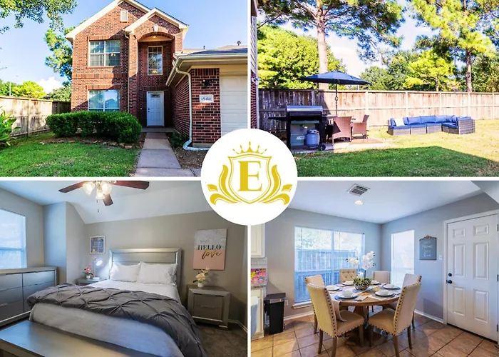 La Cozy & Modern 5Br Smart Home With Yard And Bbq incluye una zona de comedor y un comedor al aire libre con hervidor eléctrico, lavaplatos y nevera. El aeropuerto Intercontinental George Bush de Houston está a 55 km de esta casa de vacaciones.